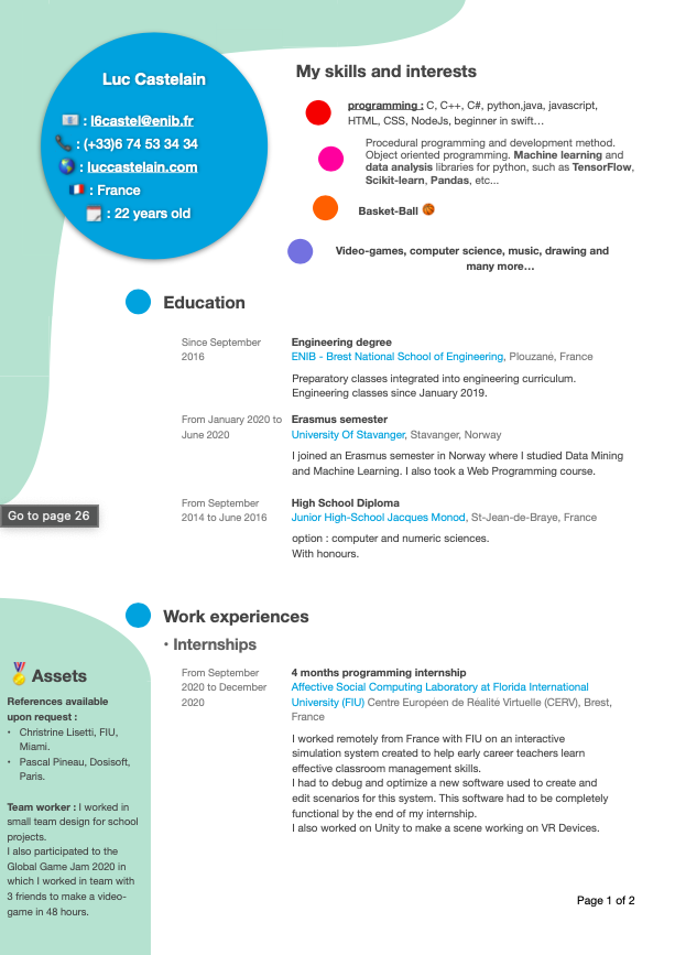 I graduated from an engineering cursus at ENIB (Engineers National School of Brest) in France.