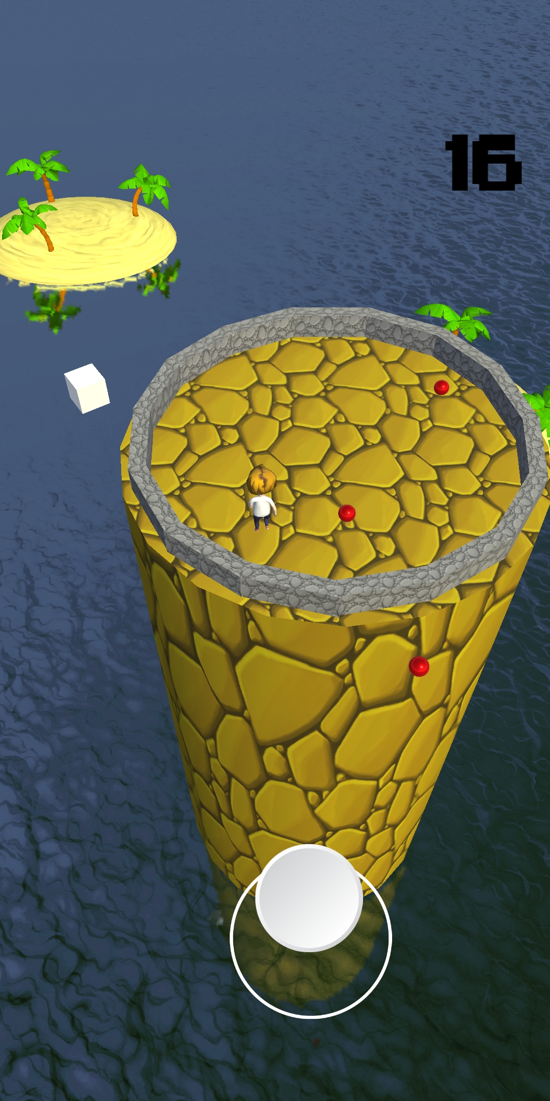 The player has to avoid red bullets fired by white cubes rotating around the arena. The player’s score is equivalent to the time he survived. As the time goes by, more cubes will appear and the difficulty will increase.